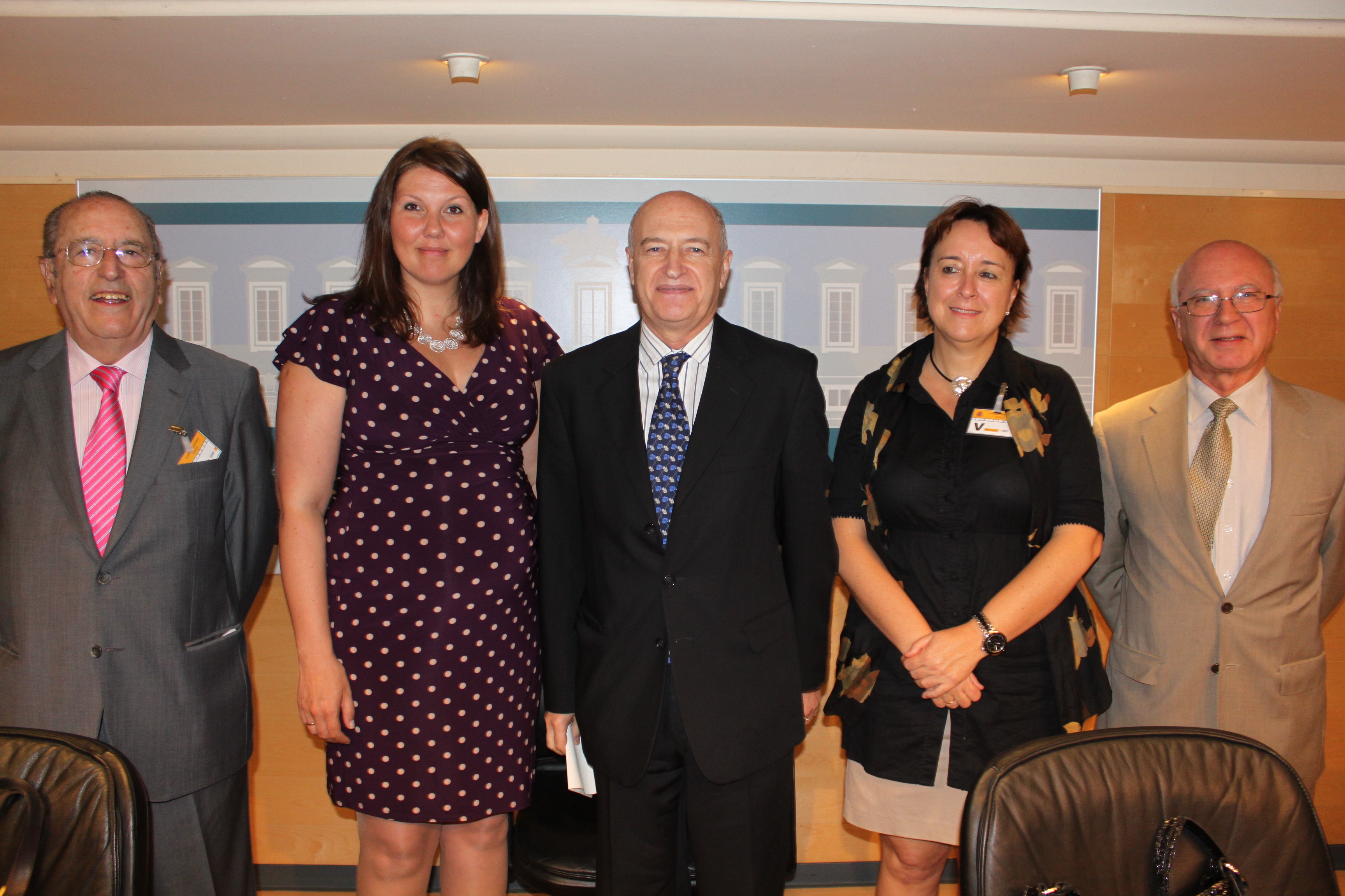 En la imagen, de izquierda a derecha: el Presidente de la Plataforma de ONG de Acción Social, Juan Lara; la Secretaria de Estado del Ministerio de Asuntos Exteriores de Noruega, Gry Larsen; el Subdirector de la Dirección General de Fondos Comunitarios del Ministerio de Hacienda y Administraciones Públicas, Fernando Fernández; la Directora General de Servicios para la Familia y la Infancia del Ministerio de Sanidad, Servicios Sociales e Igualdad, Salomé Adroher y el Vocal Asesor de Fondos Comunitarios del Ministerio de Hacienda y Administraciones Públicas, Mariano Payá. La foto es de Plataforma de ONG de Acción Social.